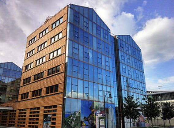 Jouissez d'un intérieur design entièrement équipé et admirez la façade réfléchissante en verre bleu qui renforce le côté ultra-moderne de l'immeuble. Donnez de la portée à votre entreprise au départ de ce site d'une superficie de 20 234 m² doté d'un espace vert et d'un canal ainsi que d'infrastructures essentielles tels une garderie, une salle de sport et un café sur site.